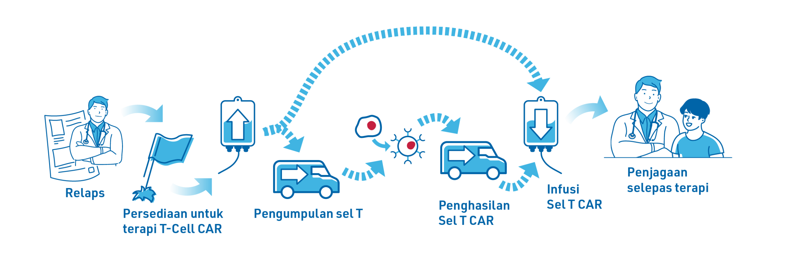 Selepas infusi, sel-T CAR menjadi aktif dalam badan dan mula menyerang sel-sel barah. Memandangkan sel-T CAR ialah sel hidup, ia bersambung untuk mengganda dalam badan anda supaya anda mempunyai bekalan berterusan yang menyasarkan sel-sel barah anda.3 Dalam tempoh ini, anda akan dipantau dengan teliti di hospital selama 7–10 hari (tempoh ini mungkin berbeza bergantung pada pertimbangan doktor).3