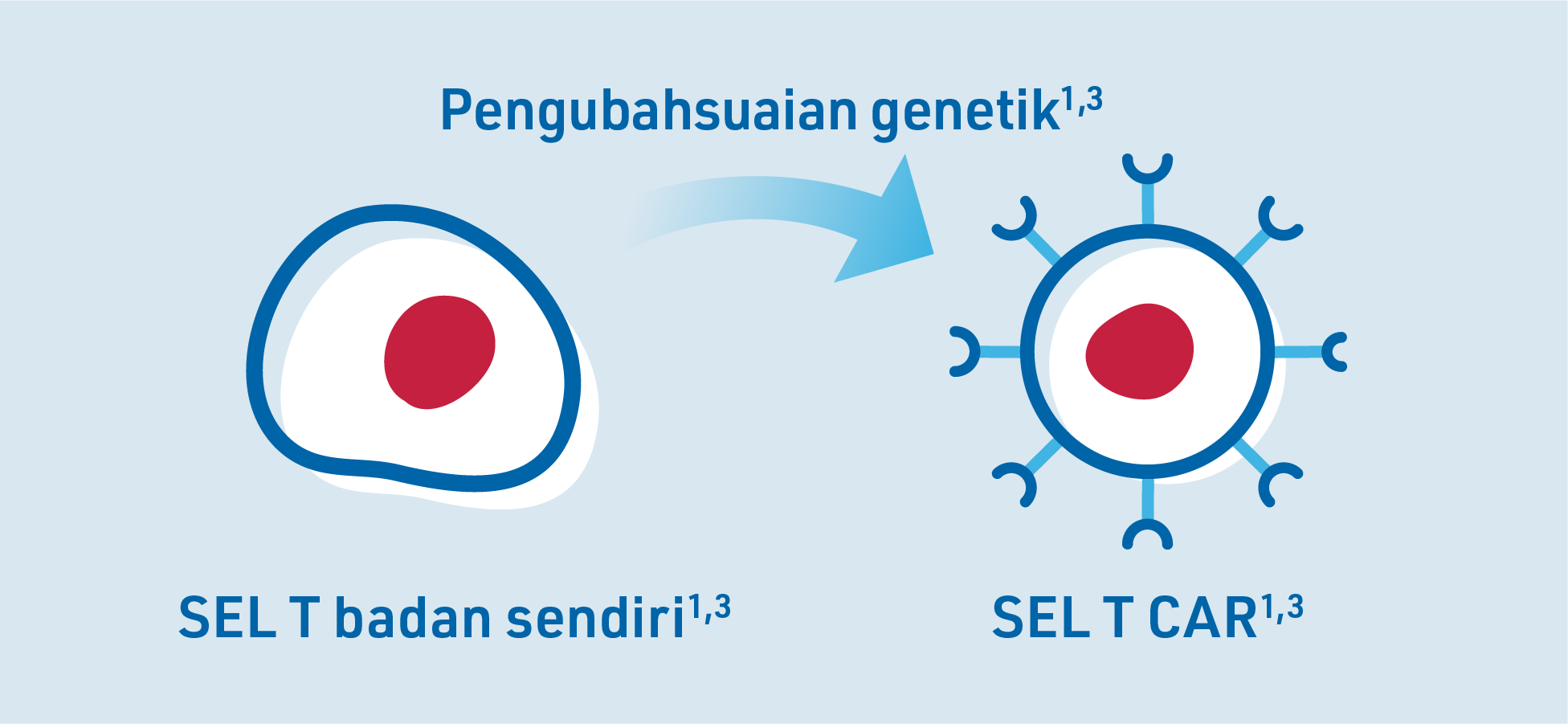 Sel T CAR dihasilkan secara individu untuk setiap pesakit dengan menggunakan sel T yang diambil daripada badan pesakit sendiri.1 Sel T merupakan sebahagian daripada sistem imun badan untuk membantu melawan jangkitan seperti virus dan bakteria, di samping menyasarkan sel abnormal badan, termasuk sel barah. Namun begitu, sel-sel barah sering membangunkan mekanisme untuk mengelakkan pengesanan oleh sistem imun, membolehkannya melarikan diri daripada tindak balas imun ini.3